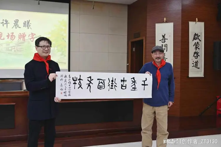 姑苏区书法家协会主席许晨曦现场挥毫,题写“千年古街百年校”书法作品,笔墨间尽显姑苏文脉的绵延与传承。许校长与许主席共同展示这一珍贵墨宝,将活动推向首个高潮。