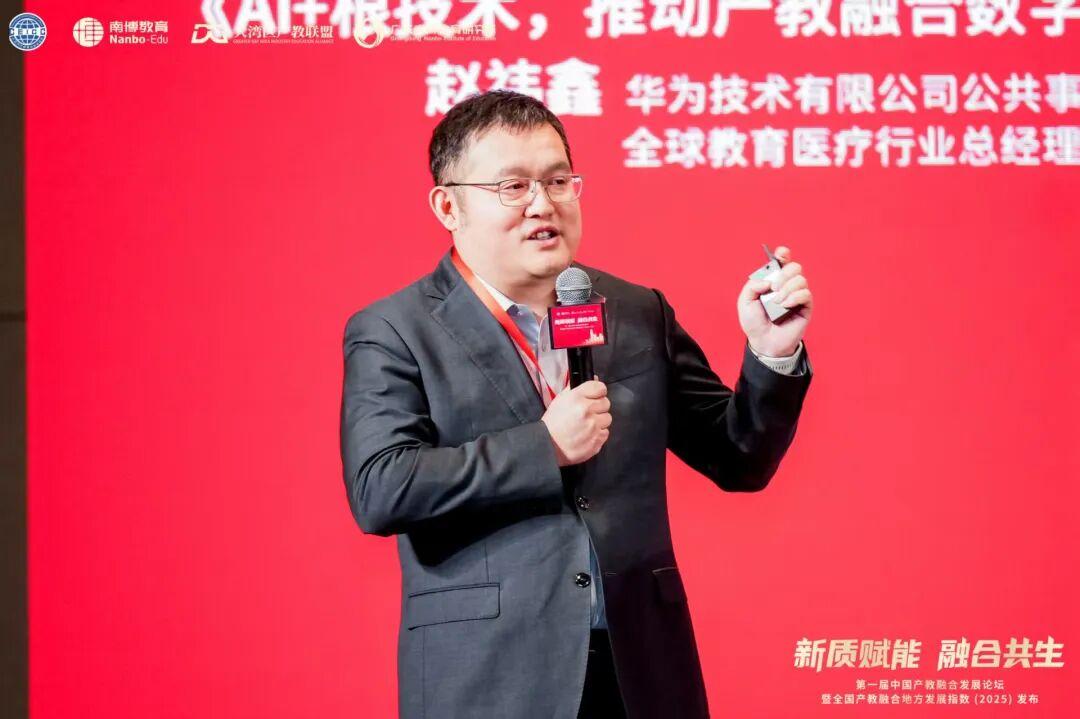 华为公共事业军团副总裁、华为全球教育医疗行业总经理赵祎鑫以“AI+根技术,推动产教融合数字化智能化发展”为题,分享了华为在推动产教融合数字化智能化方面的实践。他强调,华为以“根技术研发+ICT人才培养”双轮驱动,构建全栈ICT课程体系和智能化实训平台,助推“理论—实践—创新”一体化培养,强化人工智能等前沿技术实践教学,构建开放协同的根技术人才培养生态,很好地助力产业数字化转型。