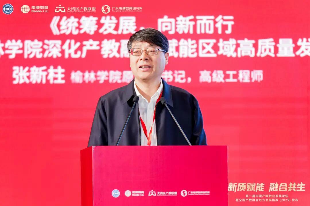 榆林学院原党委书记张新柱高级工程师分享“统筹发展,向新而行——榆林学院深化产教融合赋能区域高质量发展”的经验。他介绍了该校深化产教融合的举措办法,表示学校通过“六对接、六融入、八共建”模式培养应用型人才,并实施“AI+五大行动”全面赋能教育教学;通过深化校地、校企协同,共建现代产业学院,精准服务区域能源化工、生态农业等产业发展需求。
