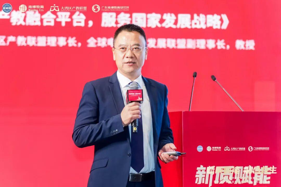 大湾区产教联盟理事长、全球电商教育发展联盟副理事长陈标新教授分享“构建产教融合平台,服务国家发展战略”的具体举措,特别是通过建设“一体两翼”产教融合共同体服务体系和生态系统,整合政产学研资源,推动科研成果转化与人才精准供给的宝贵经验。