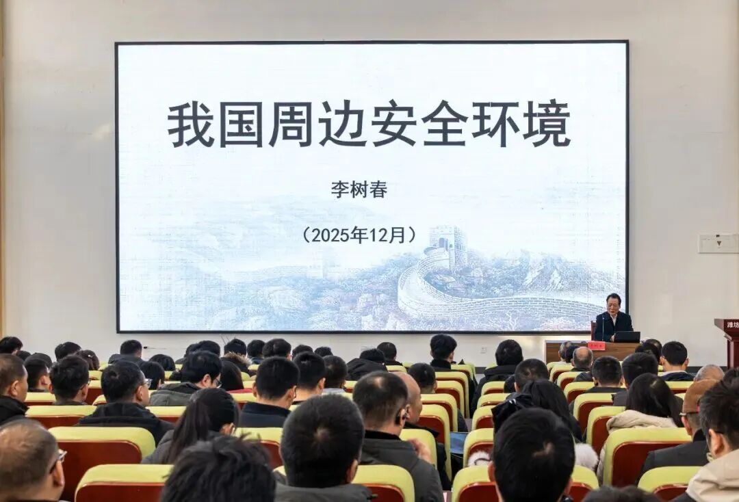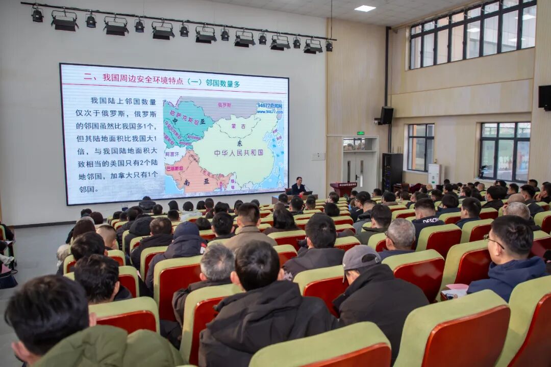 讲座中,李树春主席围绕《我国周边安全环境》并结合大量实例,从我国重要的战略位置、复杂的周边环境以及日益突出的威胁和挑战等几大方面,解读了我国周边复杂的国际局势,阐述了全民加强国防教育的重要性和紧迫性。