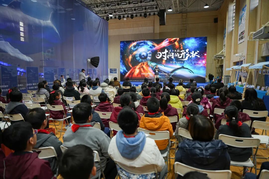 现场放映的科普电影《寻秘自然:时间的形状》,以两个虚构的侦探故事为框架,通过超高速列车上的紧张对决、菲索测光速实验的实景重现等鲜活情节,将伽利略相对性原理、速度叠加效应等抽象理论,以及爱因斯坦的思考历程,转化为易于理解的视觉语言,深深吸引着在场学生。