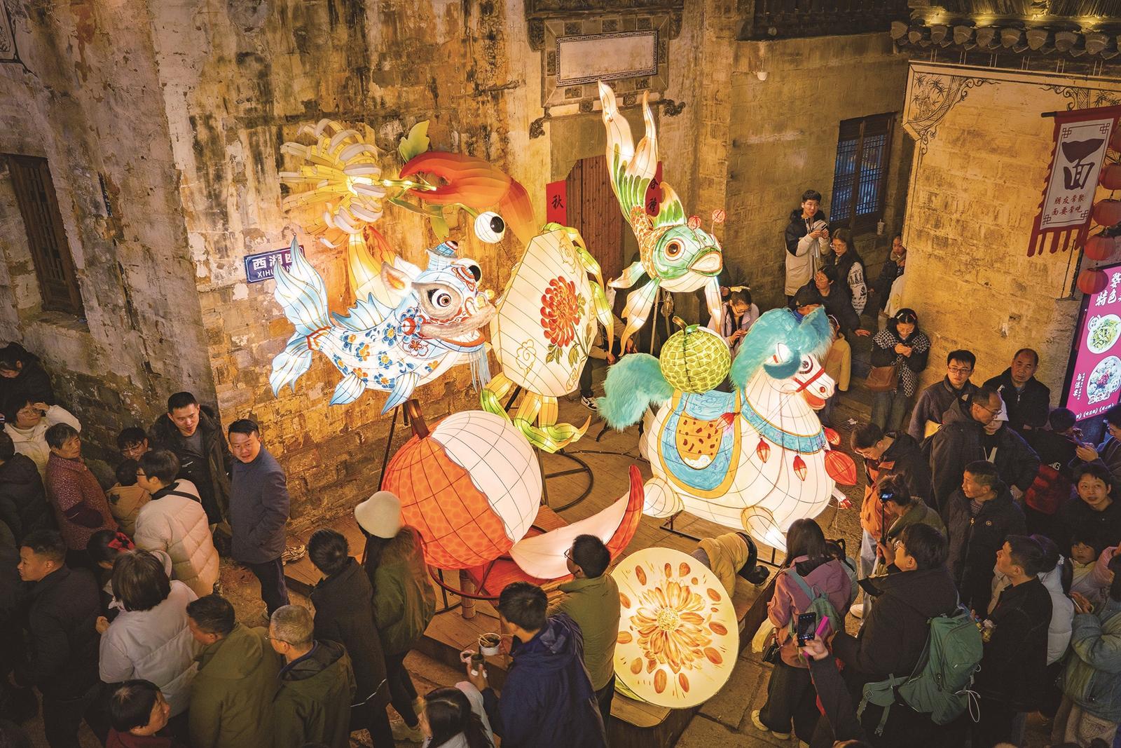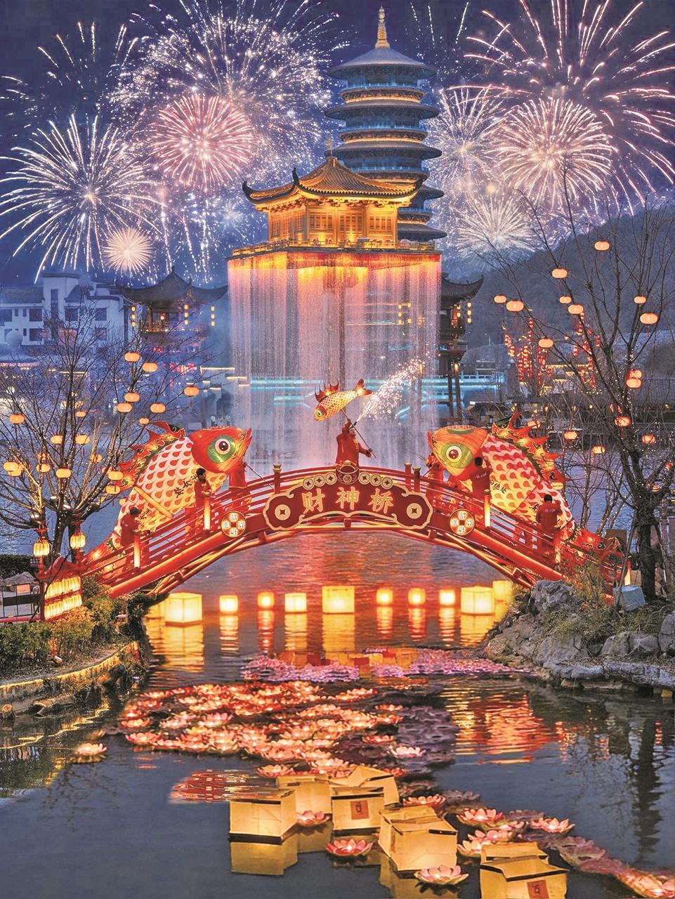 取得这些成绩,除了老牌知名景区的加持,也有新晋网红景区的发力——走进婺女洲,看打铁花与烟花交织共舞,点亮夜空;跟着弦高城内鱼灯巡游的队伍,一起穿行于古街深巷;再到江湾景区,在一场以节气为线索的沉浸式宴演中,仿佛穿越时空……