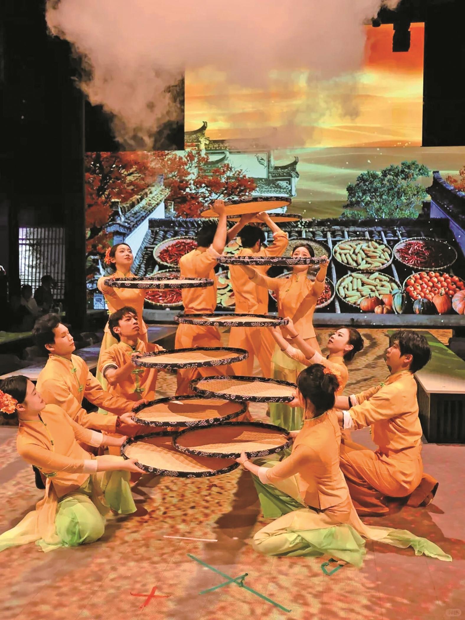 宴席间穿插的非遗展示或互动环节,让节气美食文化不再是遥远的知识。来自北京的王先生说:“在‘秋分’章节,演员用舞蹈演绎晒秋农事,背景光影是篁岭的层叠屋瓦。感觉这一刻吃的不仅是菜,也是整整一个季节的农耕文明。这种叙事深度,在别的旅游项目里很难遇到。”