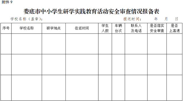 9.娄底市中小学生研学实践教育活动安全审查情况报备表