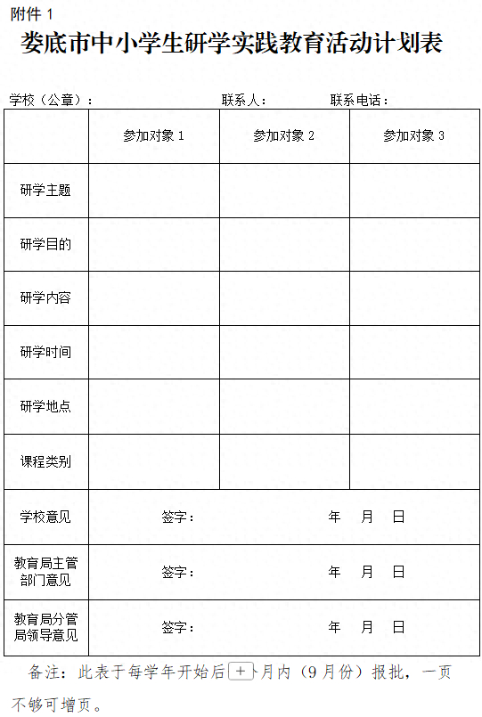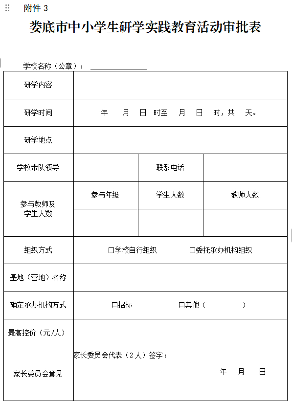 3.娄底市中小学生研学实践教育活动审批表