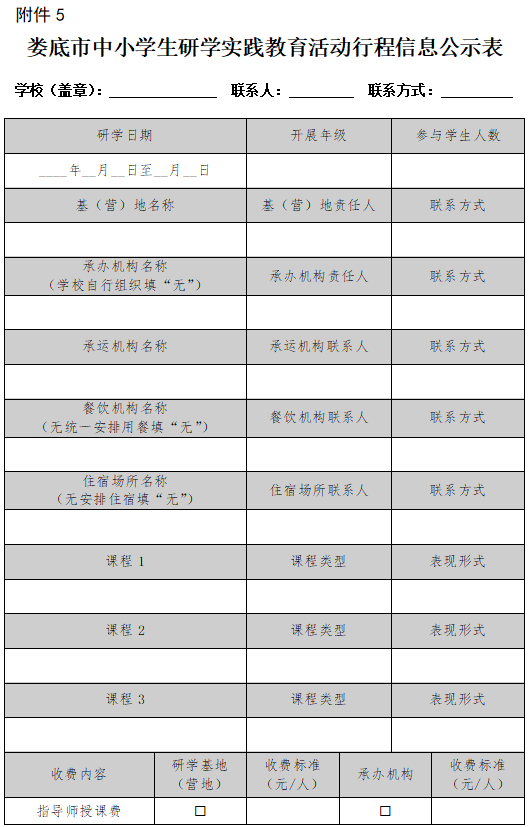 5.娄底市中小学生研学实践教育活动行程信息公示表
