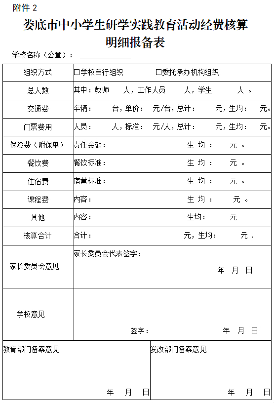 2.娄底市中小学生研学实践教育活动经费核算明细报备表