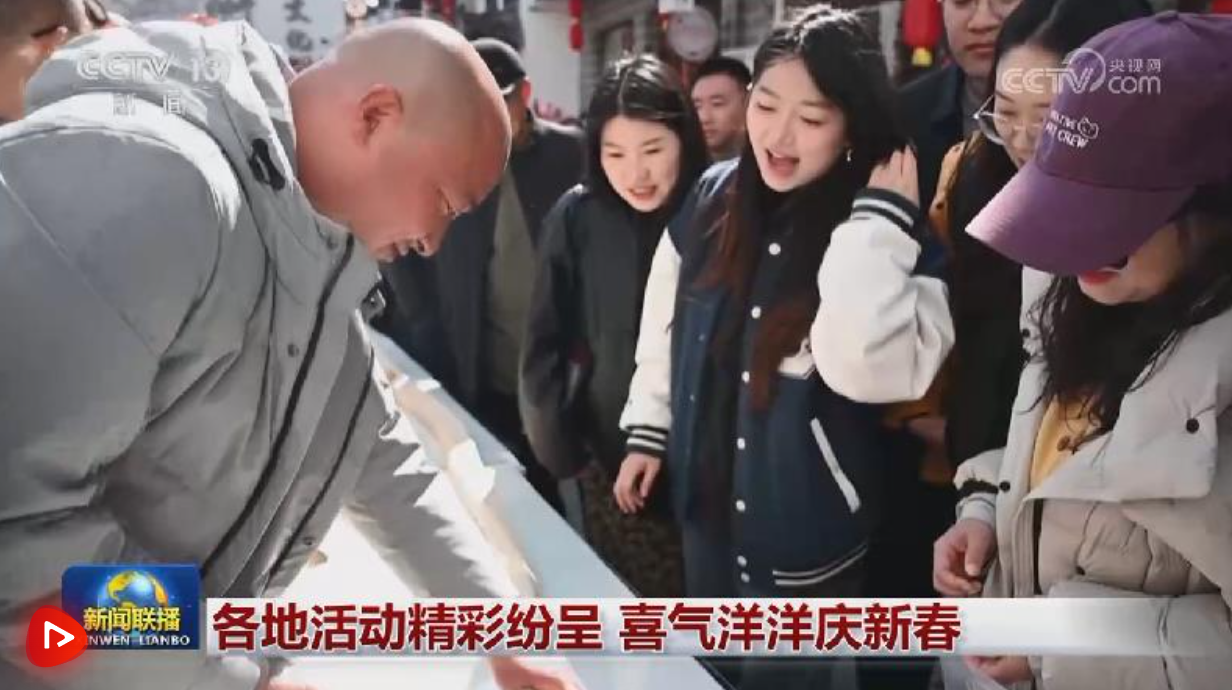 央视网消息(新闻联播):连日来,人们赏民俗、品文化,用丰富多彩的活动共庆新春、乐享假期,欢度喜庆祥和的中国年。