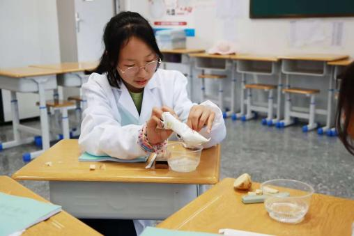 随后,团队成员在当地中学开展了别开生面的实验课堂。基于在博物馆中为孩子们介绍的古代铸造工艺基础知识,他们引导学生利用陶土与蜡块,动手模拟古代失蜡法铸造工艺,为探索前沿生命科学知识增添一抹趣味色彩。